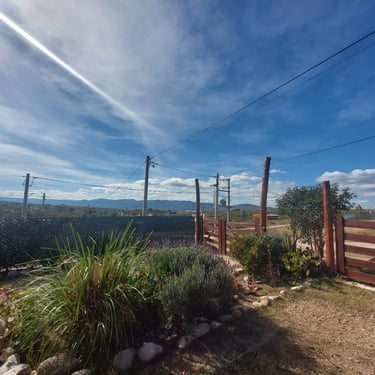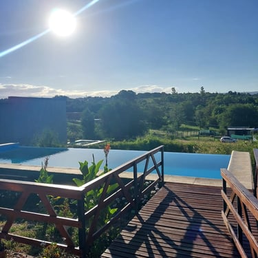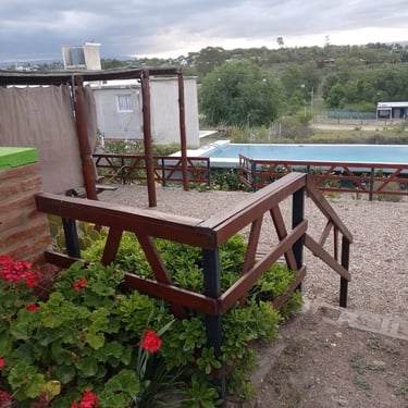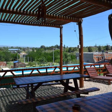 Galería cubierta con vista a las sierras.